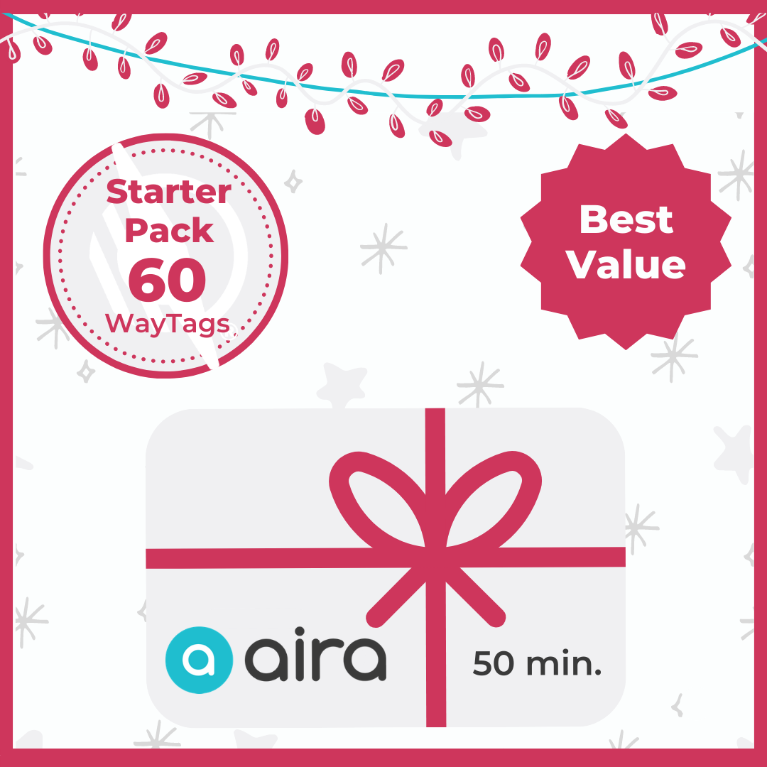 This bundle includes $50 of Aira credit and a WayAround Starter Pack of 60 WayTags.